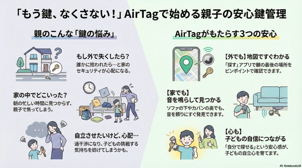 それは親として自然な願いであり、AirTagはまさにその思いに寄り添ってくれる存在です。