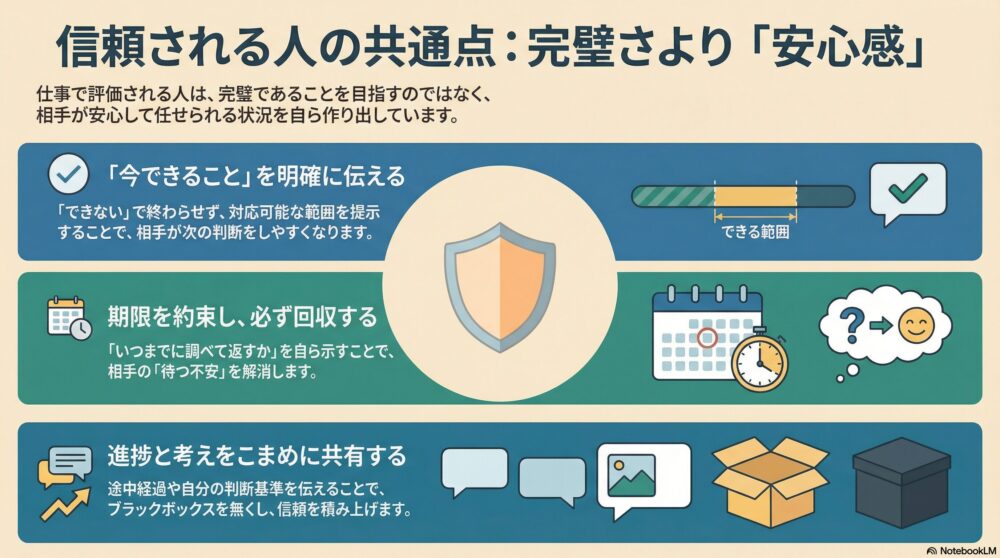 信頼される人の特徴は、相手の不安を先回りして消せること。