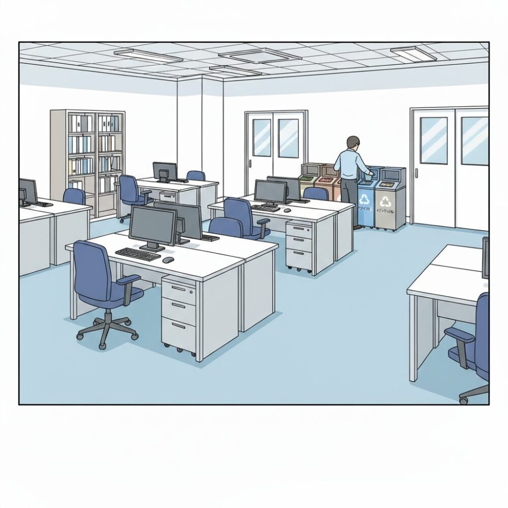 むしろ ゴミ箱の数を絞って共用スペースに集中配置する方が、清掃負担もコストも下がりやすい です。- デスクごとのゴミ箱 → 清掃・ゴミ袋交換の手間が爆増