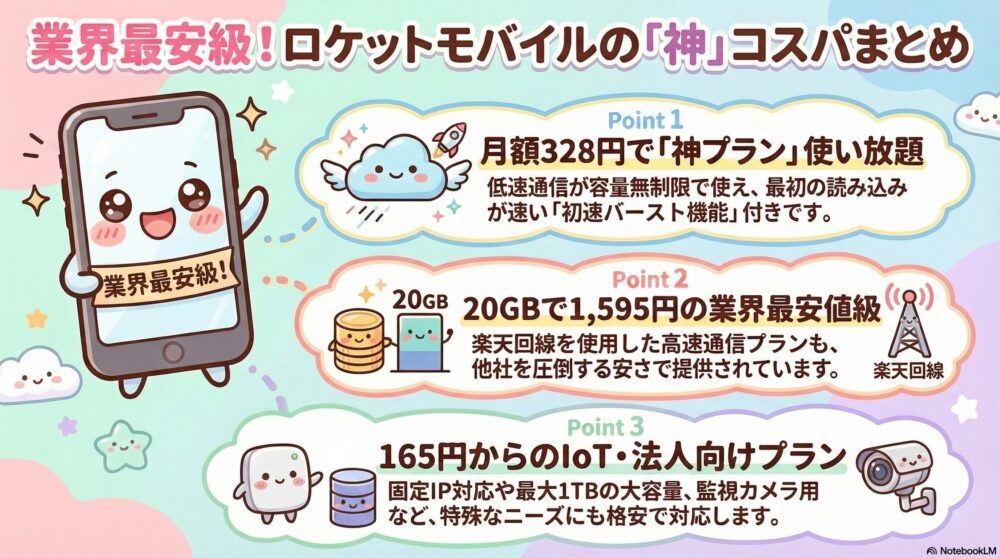 最後にもう一度結論をお伝えします。日々のスマホ代をワンコイン以下に節約したい方、そして私のように「無人になった実家に監視カメラを置きたいけれど維持費はかけたくない」と悩んでいる方は、迷わず『ロケットモバイル』を選んでください!