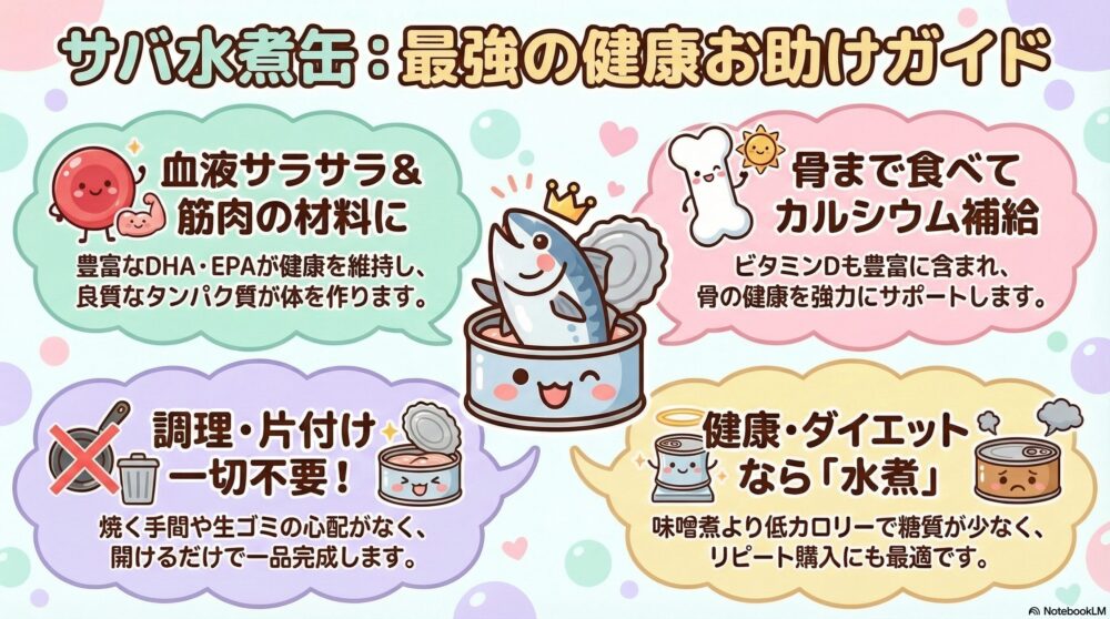 サバ水煮は手軽に栄養を摂れる優秀な健康食です。