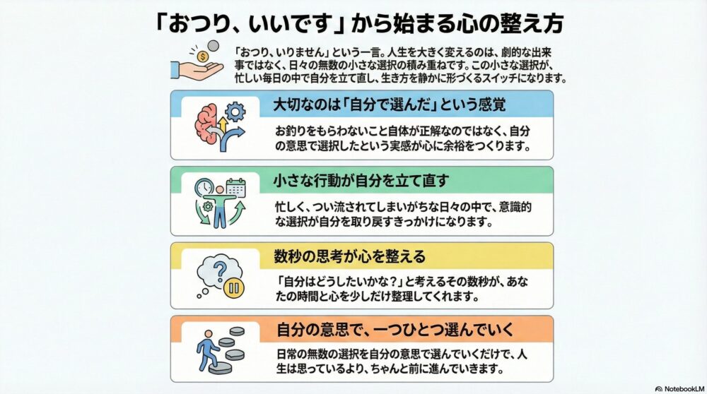 「お釣りをもらわない」という小さな習慣は、私にとって“心と生き方を整えるスイッチ”になっていた。