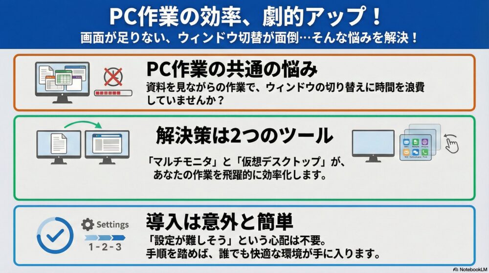 マルチモニタと仮想デスクトップで作業効率を最大化する方法【今日からできる改善ポイント】